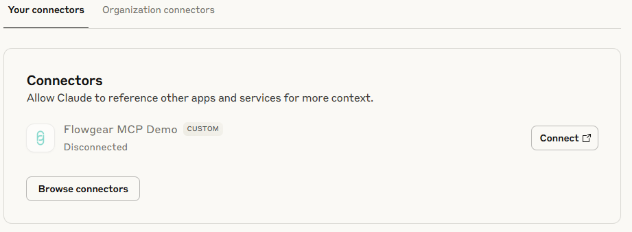 This document describes the steps to connect a Flowgear MCP Server to Claude.