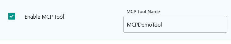 Enable Workflow as MCP tool – Open the Workflow's Settings. Ensure that the "Enable MCP Tool" option is checked. Provide a value for the "MCP Tool Name" input (maximum 40 characters). Close and save the Workflow. If Release Management is enabled and the tool will be invoked from a different Environment, the Workflow may need to be promoted to that Environment.