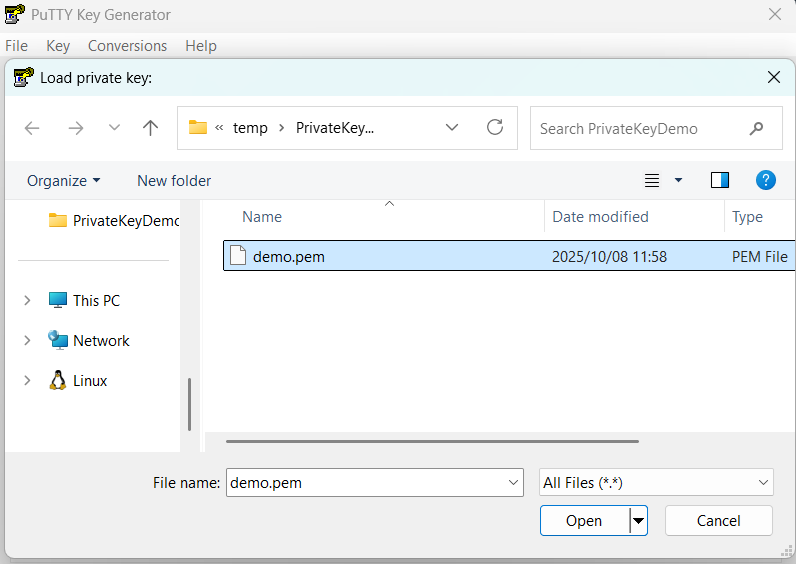 . (Select All files if the private key is in the PEM format)